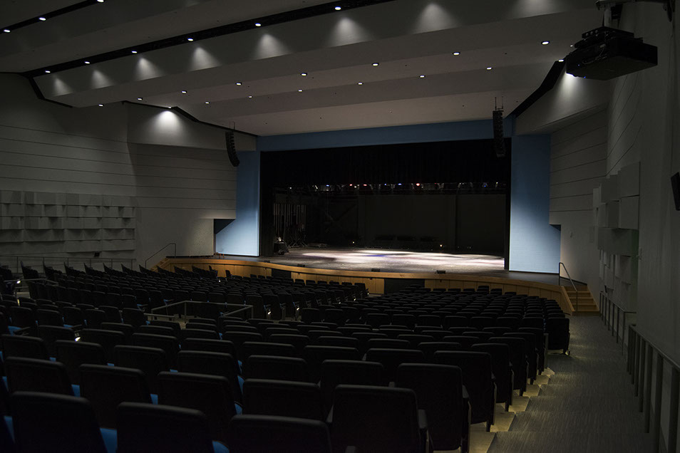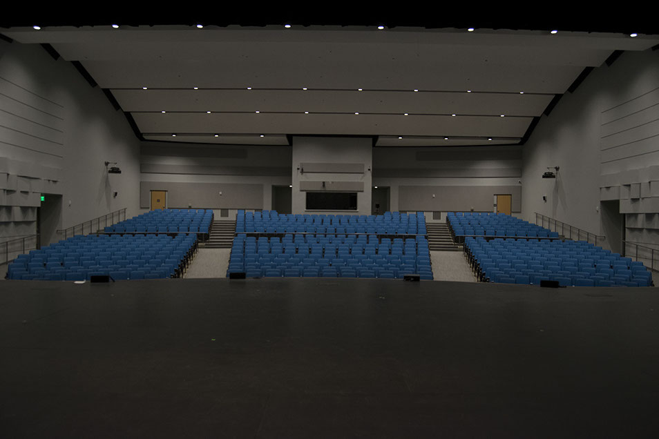 drama program. The Gym and Auditorium share a common lobby and support facilities. The CoEd Gym includes 600 fixed over concrete, a sunken play court, and men's and women's locker rooms.